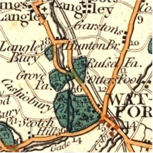 “Watford’s first station was not on the site of the present one.  The most direct route would have been through the grounds of Cassiobury and the Grove.  This was not popular with the Earls of Essex and Clarendon so the line swept in a quarter circle around the town” (Railway)