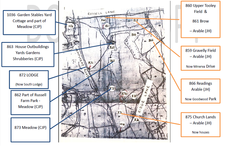 Key: JH = John Horncastle (tenant farmer) CJP = Charles John Pearce/Pearse (Russell House Occupant)