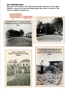 The following notes and a few used earlier, were collated by Minerva Drive and Goodwood Avenue residents for the queen’s jubilee party in 2022; see photo.