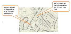 The practical reason aside, this way of proceeding had the advantage for the owners of the Estate of providing them with funding for infrastructure as it progressed, thus avoiding heavy initial expenditure. By 1939 most roads on the Estate had been constructed with the exceptions being the ‘service road’ (parallel to the Hempstead Road – A411), Greenbank Road, Hemingford Road and Lebanon Close.