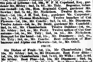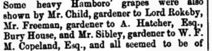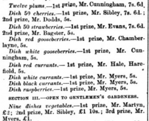 The range of plants, fruit and vegetables produced in the Russell Farm Gardens is demonstrated in the prizes awarded to William Sibley, gardener for the Copeland family living at Russell Farm in the second half of the 19th century.