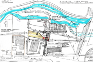Russell Farm House kitchen gardens were located on the left hand side of Hempstead Road, near the river/canal.