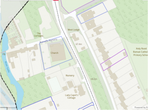 (In 18th-century English maps, walled gardens were often depicted with a symbol resembling a rectangle with a small, thick line or a fence-like pattern around the perimeter. This indicated that the area was enclosed and likely used for cultivating plants or fruits. The specific symbol could vary slightly depending on the cartographer and the map’s overall style, but the basic idea was to represent the enclosure.)