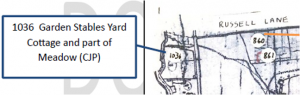 This map is an extract from the Tithe Map, dated 1842. 1036 was the area of the Kitchen Garden.