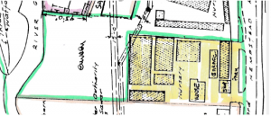 The kitchen gardens portion of land was still in the Russell Farm estate when Lewis Evans bought it from the Earl of Essex in 1902. Evans then added more land – shown in green.The particulars for the estate in 1902 said